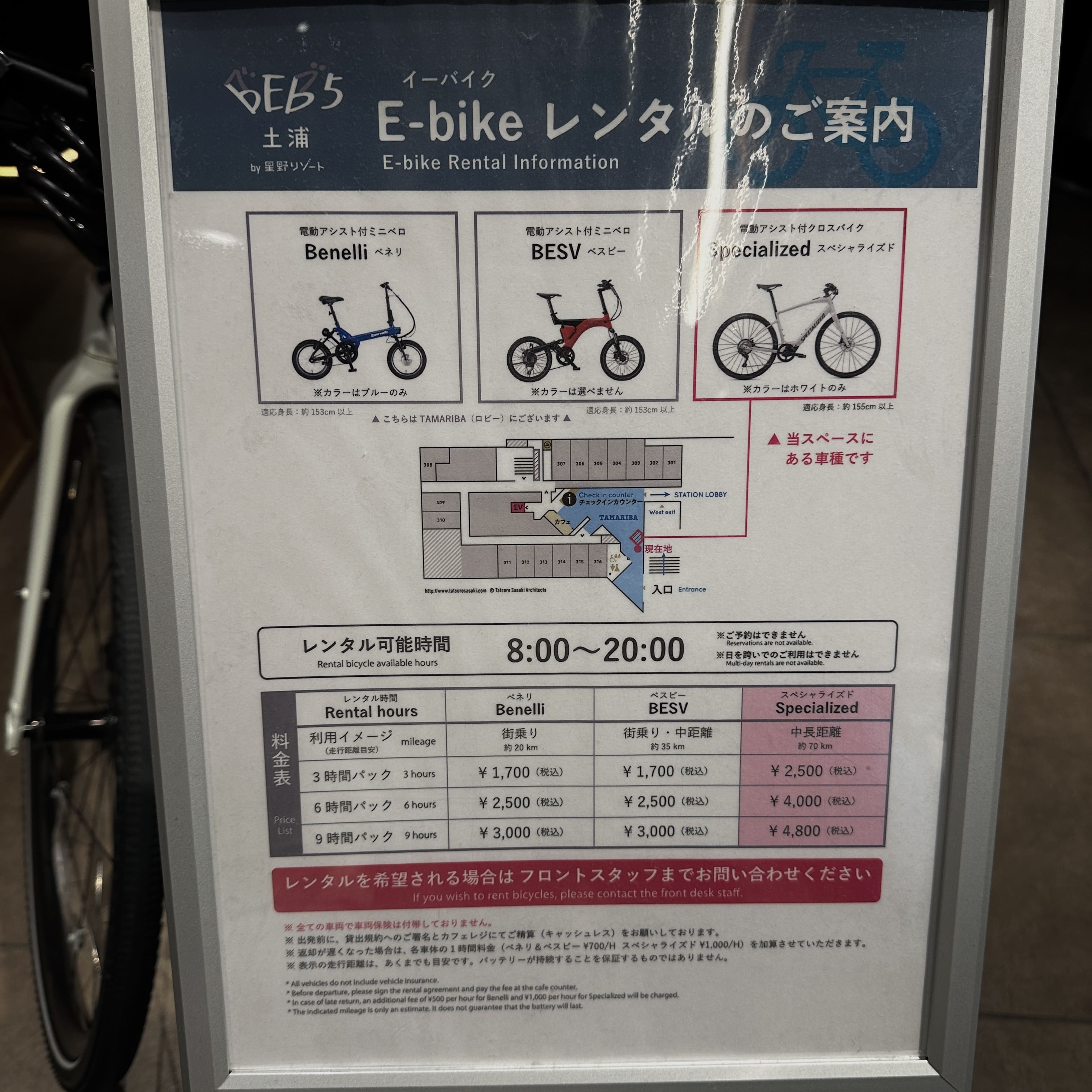 日本第二大湖「霞ヶ浦」,從土浦站騎行不用5分鐘就能抵達。 如果是想好好環湖一圈,推薦在BEB5土浦櫃檯租借電動競速自行車,有三種類型可以選擇,而最便宜的方案租借3小時是¥1700。 如果和我一樣只是想體驗土浦市自行車友善氛圍的話,也推薦用APP「HELLO CYCLING - シェアサイクル」,有很可愛的電動米白色腳踏車可以租借,每15分鐘是¥200。