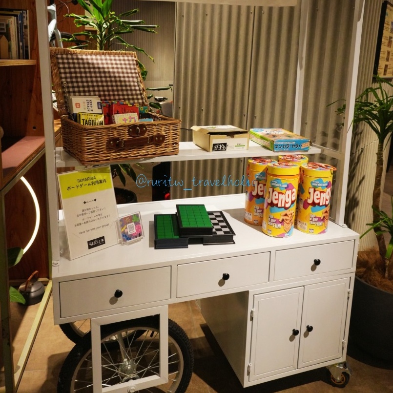 這次的住宿安排在土浦車站一出來,便一目了然的星野集團飯店「BEB5 土浦」。我們在抵達時先去寄放行李,等到逛完公園回來,超過下午 3 點就可以辦理入住。大廳及房間的室內設計風格融合土浦的單車元素,呈現簡約而現代的感覺。大廳拜訪著沙發與桌椅,配合柔和的光線,營造溫暖放鬆的氛圍。飯店提供各類書籍及桌遊,皆可自由帶回房間或在大廳使用,不論是獨旅或三五好友成群出遊都很適合打發時間。房間內設有可以掛單車的單車架,插座很多很方便。