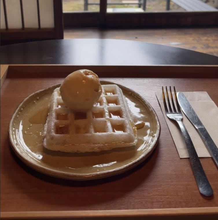 就位在亀城公園對面的老宅咖啡館「城藤茶店」,由昭和時期的木造住宅改建而成,散發著懷舊又溫馨的氣息。這次點了店內人氣定番的「原創咖哩」、「年糕鬆餅」,還有香氣濃郁的「起司燉飯」。咖哩使用土浦名產蓮藕和鷹嘴豆製成,微辣中帶有爽脆口感,燉飯奶香十足,份量剛好。甜點的年糕鬆餅外脆內Q,淋上店家特製醬汁再搭配冰淇淋一起享用,是地方媒體和節目都推薦的特色甜品。