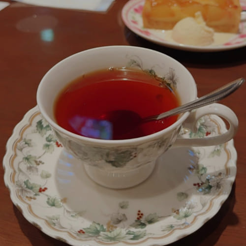位於同一條街道的小巷內,還有一家充滿懷舊氣息的紅磚咖啡館「喫茶 蔵」,也是受當地居民和遊客歡迎的人氣咖啡廳。點了蘋果塔和熱紅茶,還很幸運地點到了剩最後一份的紅茶戚風蛋糕。店內的玻璃窗和建築設計,加上偏英式的餐點茶具及餐桌,整體氛圍比上一間更添一份莊嚴和優雅。很適合來這裡享受英式下午茶時光。