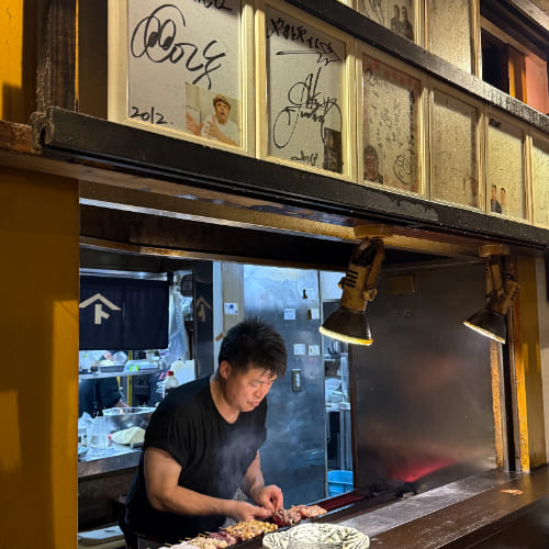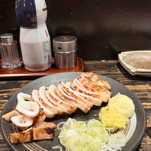 晚餐選擇來到附近的老字號居酒屋「やまとや」。隱身在地下,店面雖然不起眼,卻是歷史悠久且非常多名人來到訪用餐的居酒屋,一走進店裡,牆上滿滿的簽名讓人印象深刻。那天正好被安排坐在吧檯的位置,能近距離看到師傅在開放式廚房裡現烤串燒。必點招牌餐點是土浦名產蓮藕天婦羅、炸蓮藕夾肉餅,可惜天婦羅已售完,不過炸肉餅口感外面酥脆內餡紮實且香氣十足,另點的魷魚與串燒也都表現出了店家的優秀水準。