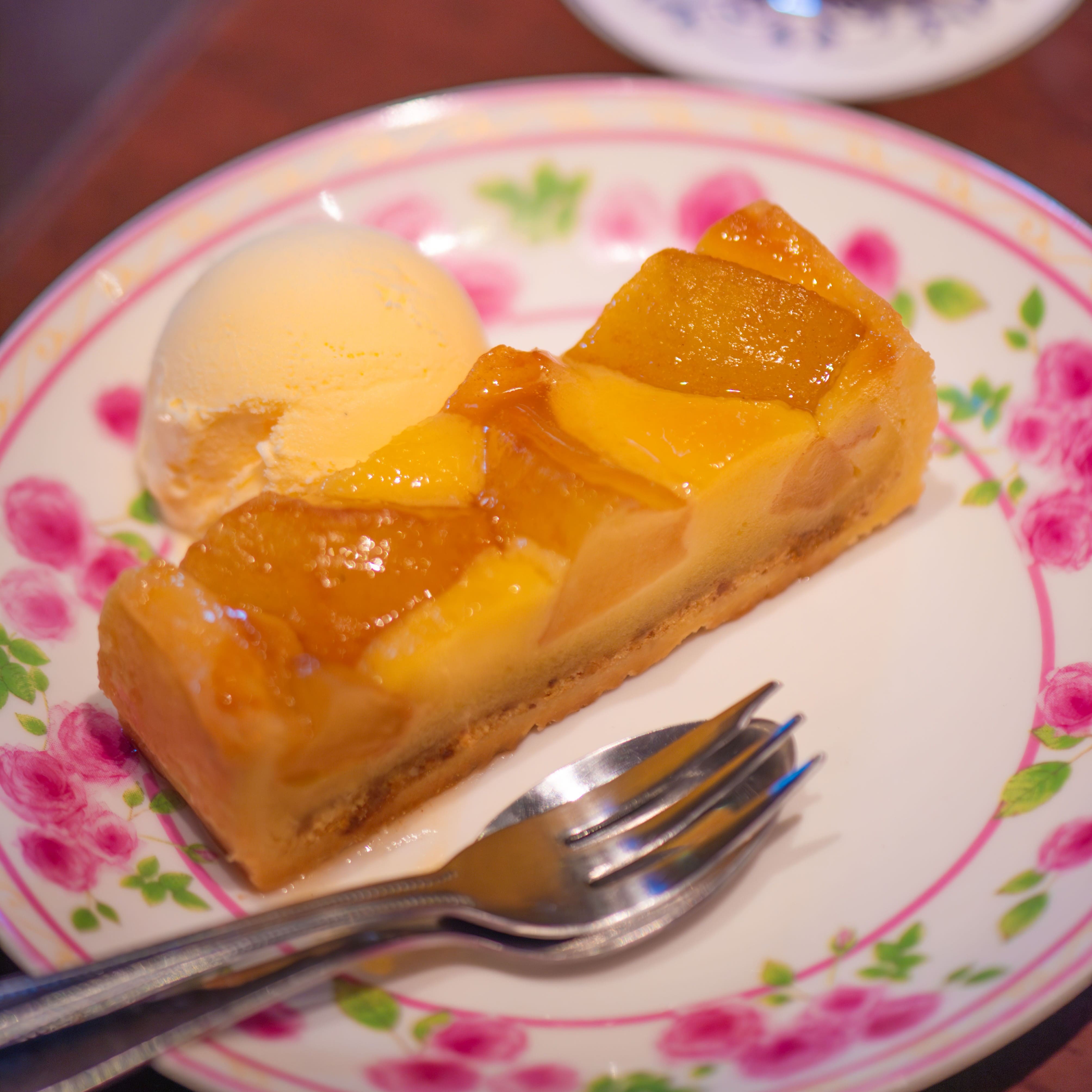最後一站是古老倉庫改建的復古喫茶店。一樣點了有土浦名產的蓮藕咖哩飯,端上來的時候發現白飯用成飛行船的造型,真的太可愛了!查資料發現1929 年完成世界一周航行的齊柏林飛行船曾經來到霞浦海軍航空隊基地,現在土浦室內也有關於飛行船的紀念館。看著店內的店員都是高齡者居多,想必這對他們是最深刻且值得紀念的回憶吧!飯後再點一份蘋果派,剛好為今天的腳踏車行畫下完美的句點。※腳踏車停車位:土浦まちかど蔵停車場
