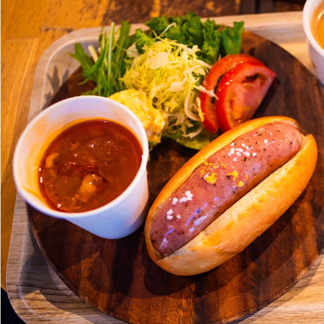 飯店的早餐和車站直結的商場 「プレイアトレ土浦」 合作,可以選擇Tullys咖啡店、麵包店或是假日限定的拉麵店。這次因為是平日的早餐就選了麵包店COURNNE BAKERY。只要出示飯店早餐券就可以兌換指定的麵包套餐,可以選擇在商場的公用空間享用。這次的早餐是多汁的香腸堡和捲餅,附餐的熱湯也超美味,很適合開啟美好的一天!