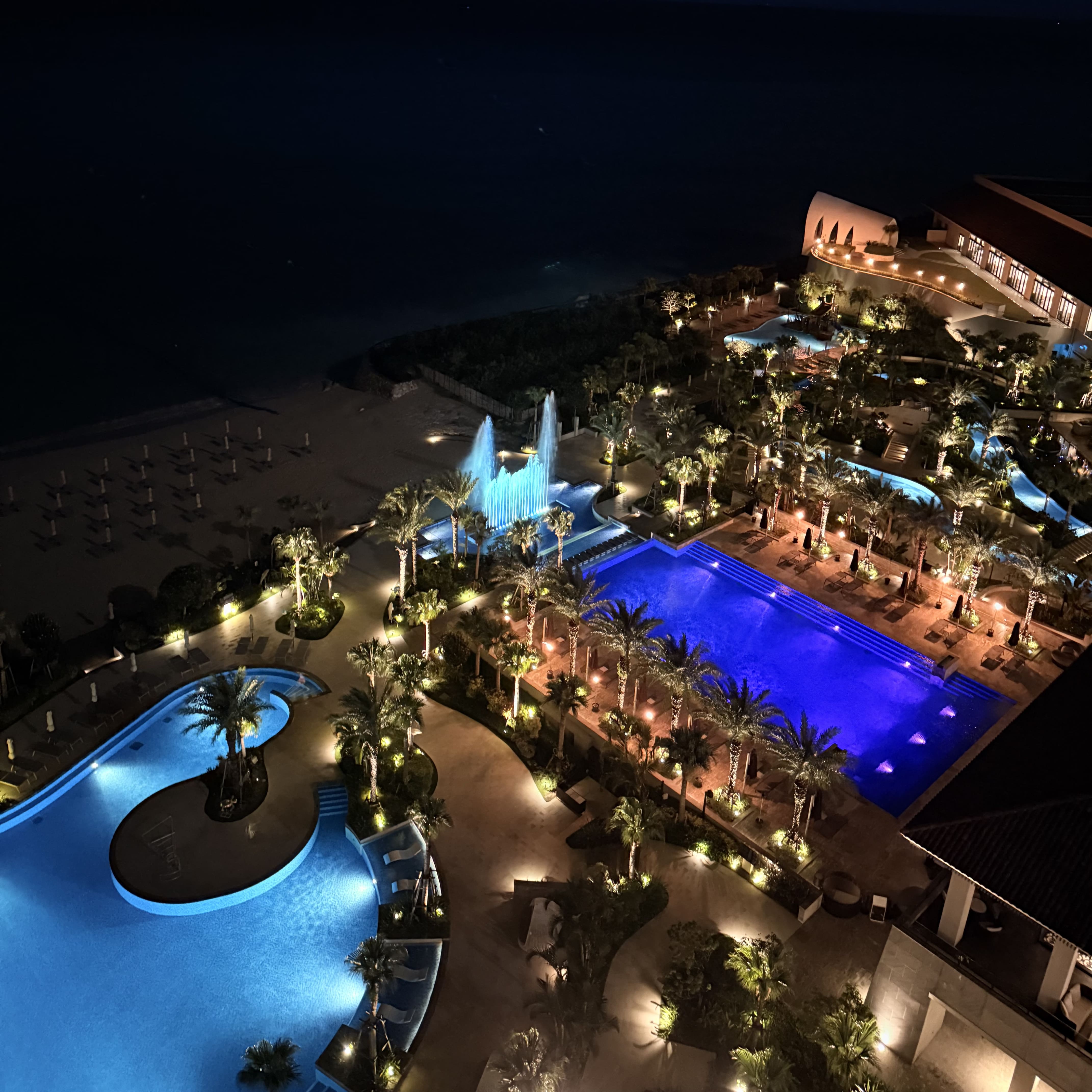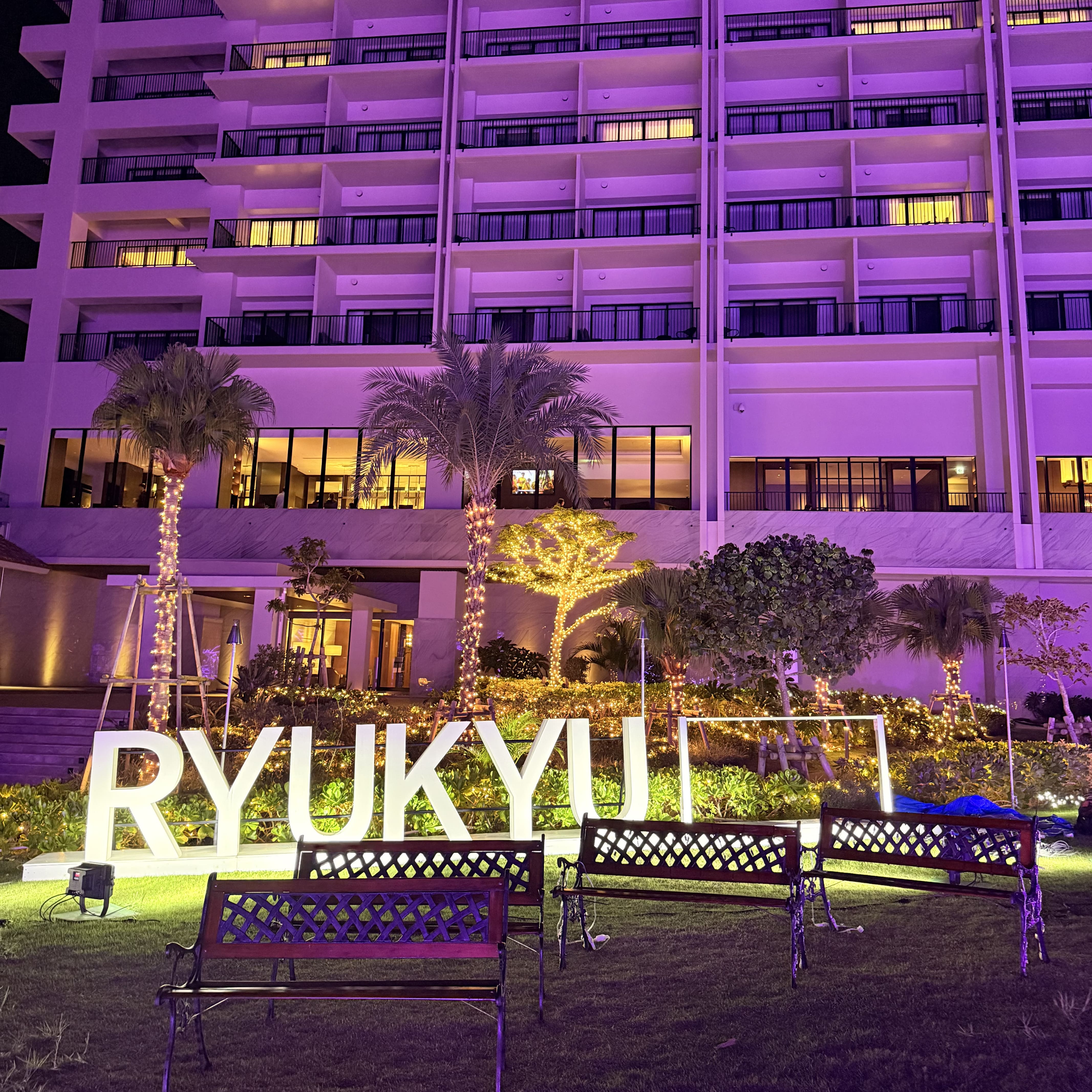まだ少しプレミアクラブラウンジが使えるので寄ってみると、窓からイルミネーションのライトアップが見えました。 2025年11月14日から開催の『月夜のワンダーイルミネーション』の一部が点灯していたようです。 宿泊期間がイルミネーション前だったので見られないな...と残念に思っていたのですが、少しだけでも見られてラッキーでした。 本格的に始まると約300,000個のライトが点灯する幻想的な空間になるようです。 冬の沖縄でもイルミネーションが楽しめて素敵な滞在になりますね!