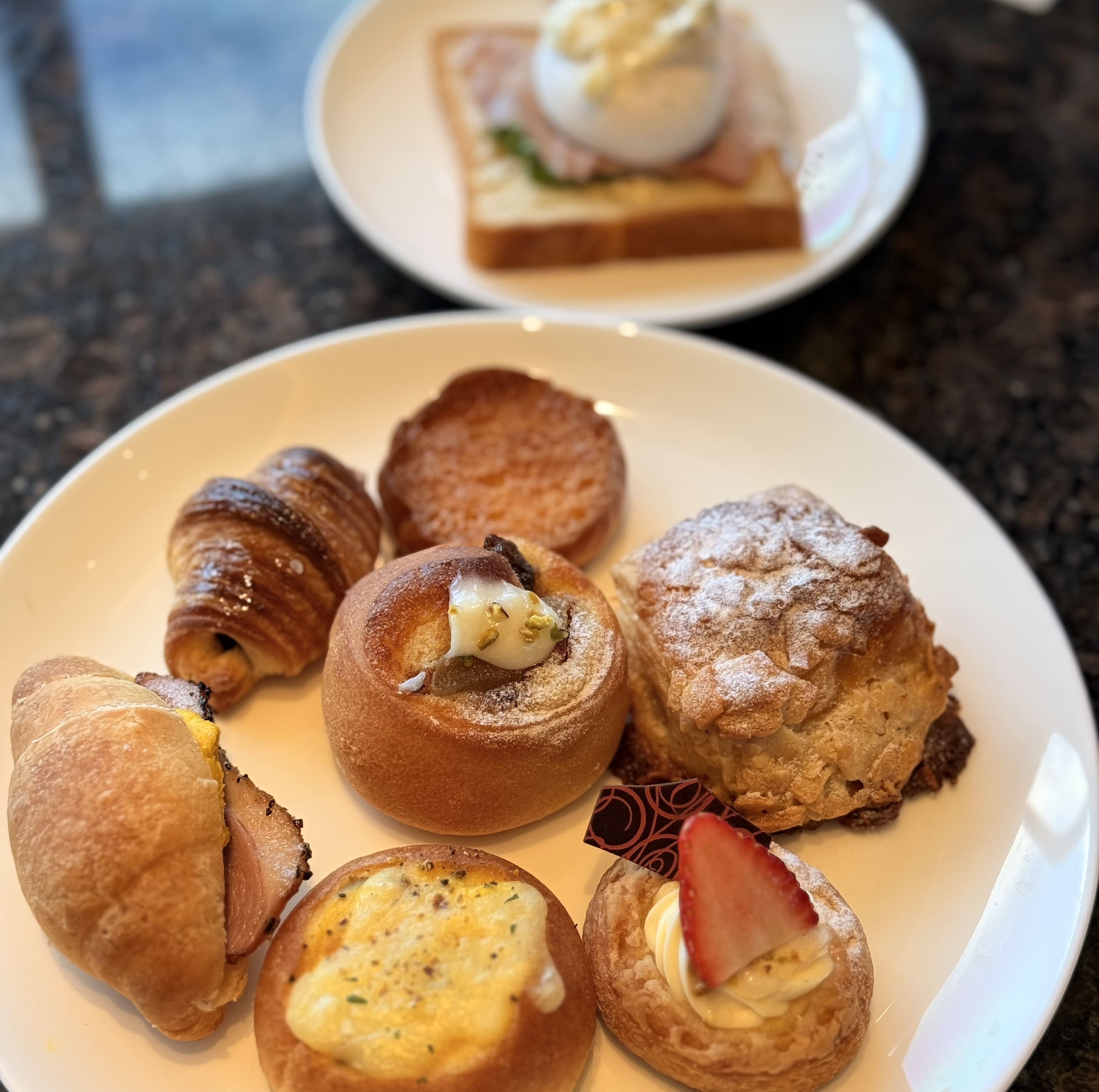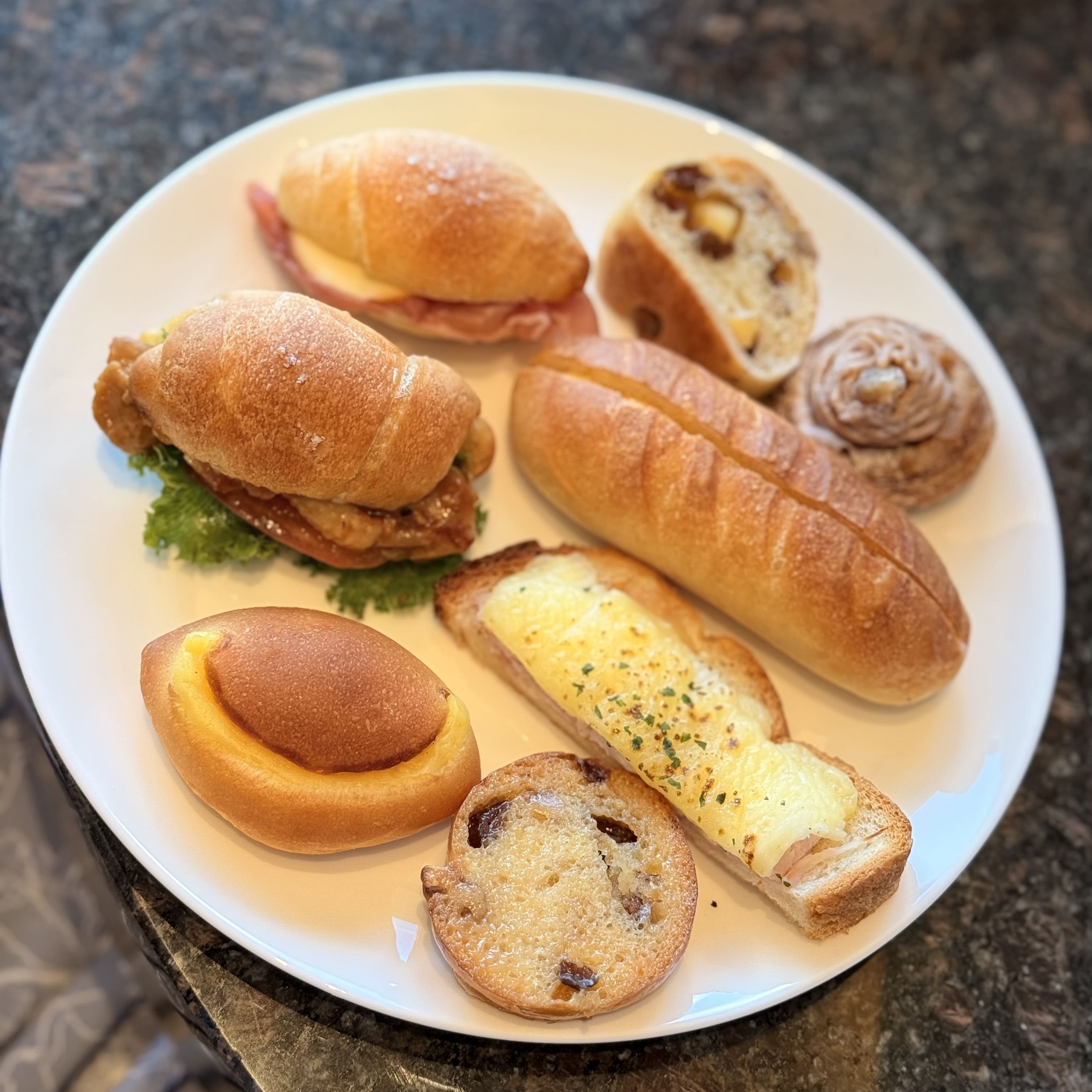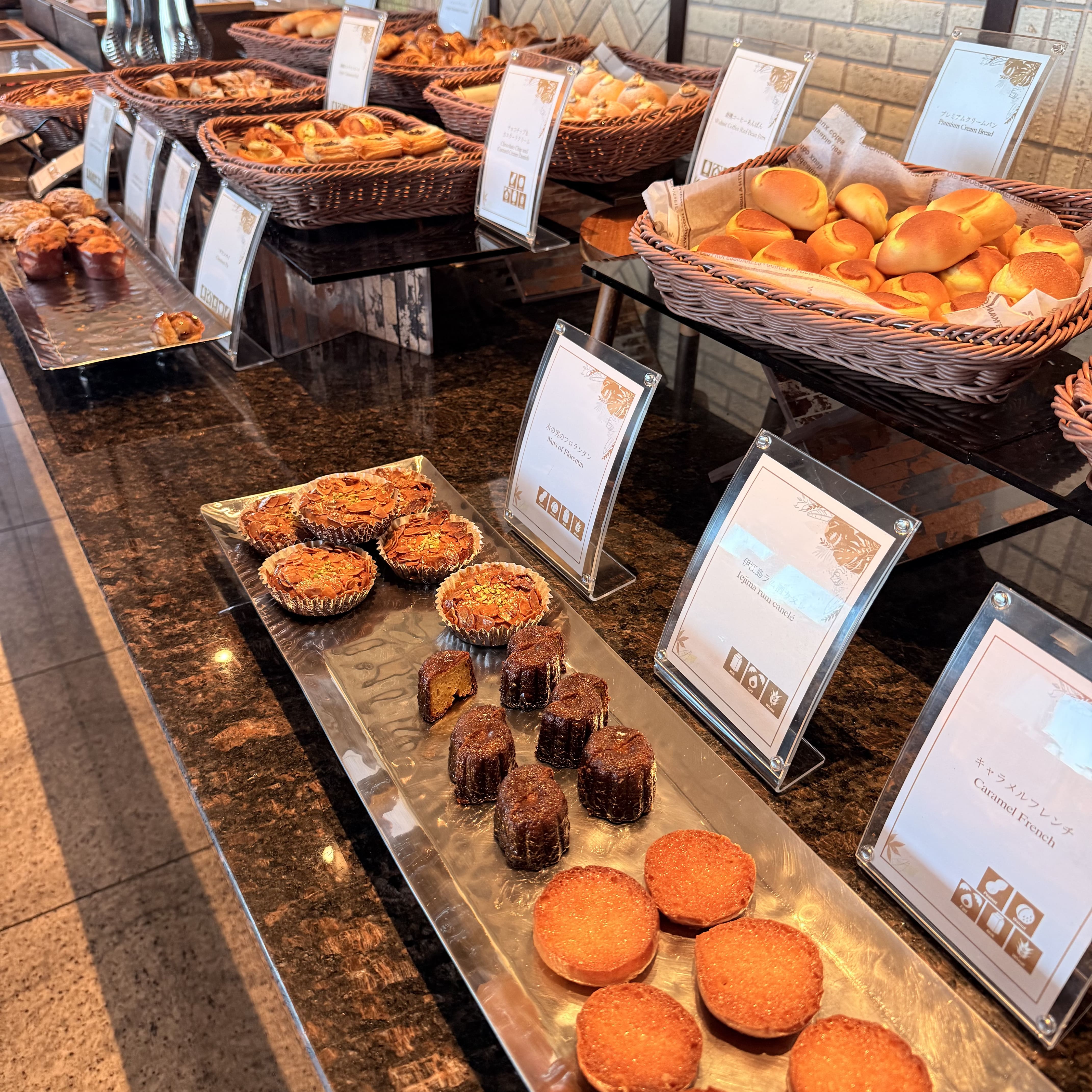 プレミアクラブラウンジでの朝食は、なんと常時25種類以上のパンが勢揃い。 まるでパン専門店のようなラインナップでどれを食べようか迷ってしまいます...! こんなにパンの種類が豊富な朝食は初めて見ました。 専任ベーカリーシェフがワンランク上の素材・レシピで作っているだけあって、どれも感動する美味しさ。 お気に入りのパンはおかわりしたいけど、せっかくなら他のパンも食べたい!と思い、結局16種類のパンをいただきました。お腹いっぱいです。 プレミアクラブラウンジではなんと朝からスパークリングワインやオリオンビールを飲むことができます。お酒が好きな人には最高ですね!