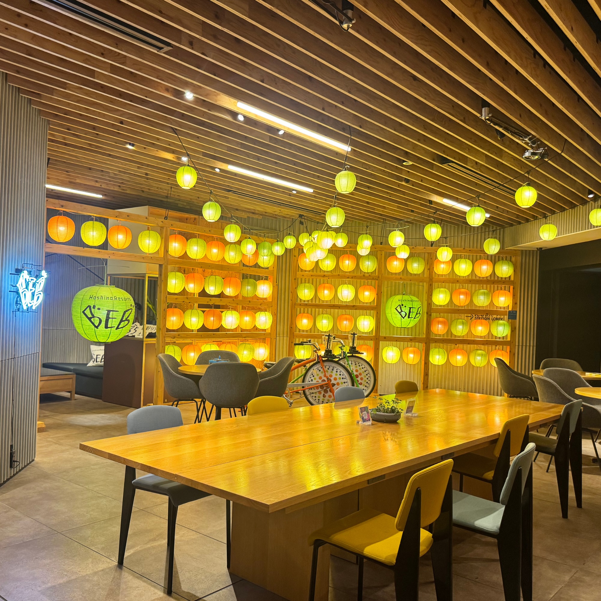 抵達土浦的第一站,先把行李寄放在今晚入住的「BEB5土浦」。從車站札口一出來就能看到飯店入口,位置超方便!Lobby 裡擺滿了各式單車裝飾,讓熱愛單車的男友一進門就超興奮!剛好碰上哈密瓜季節,牆上的哈密瓜燈籠也太可愛了。寄好行李還在Lobby稍微休息一下,我們就準備出發去吃午餐啦!