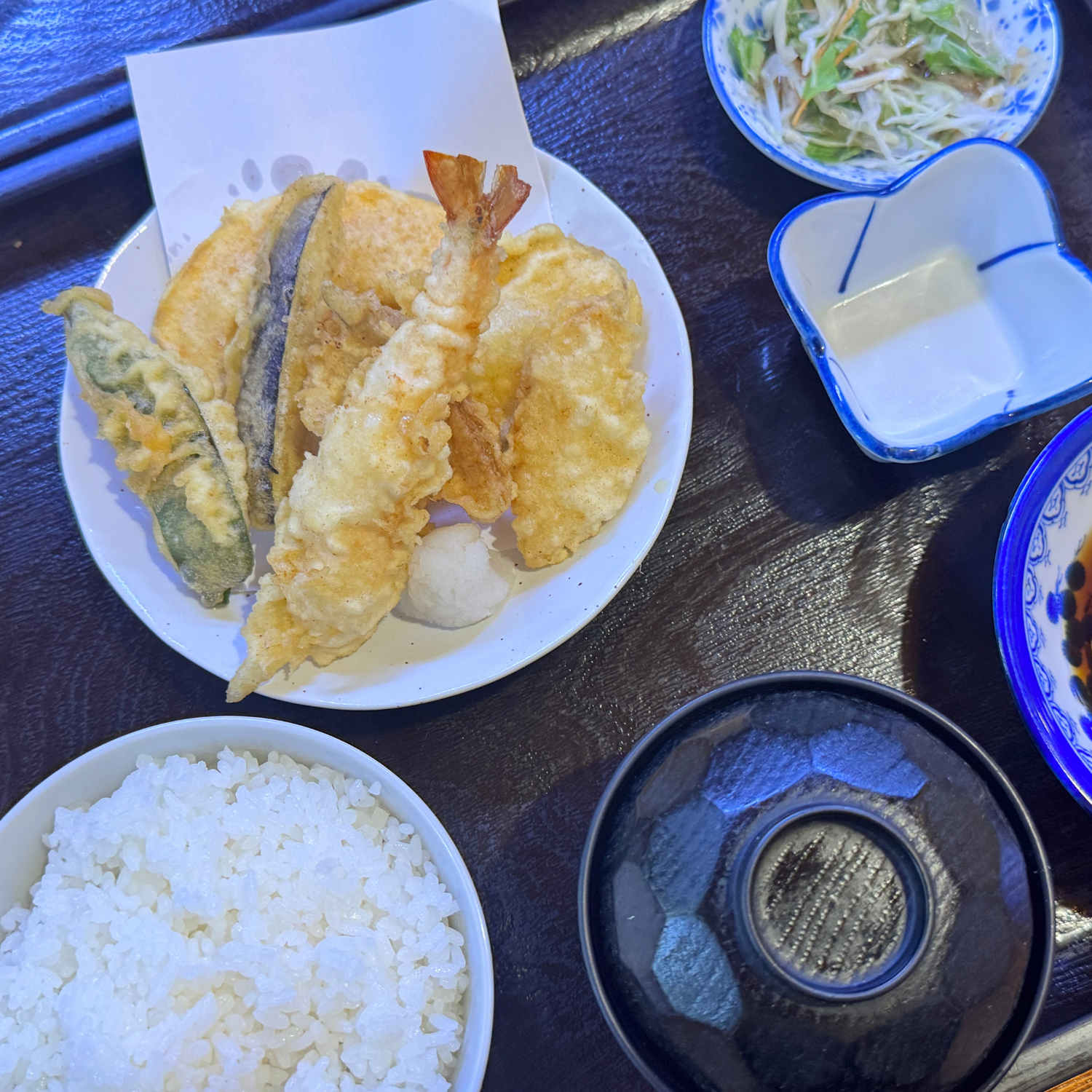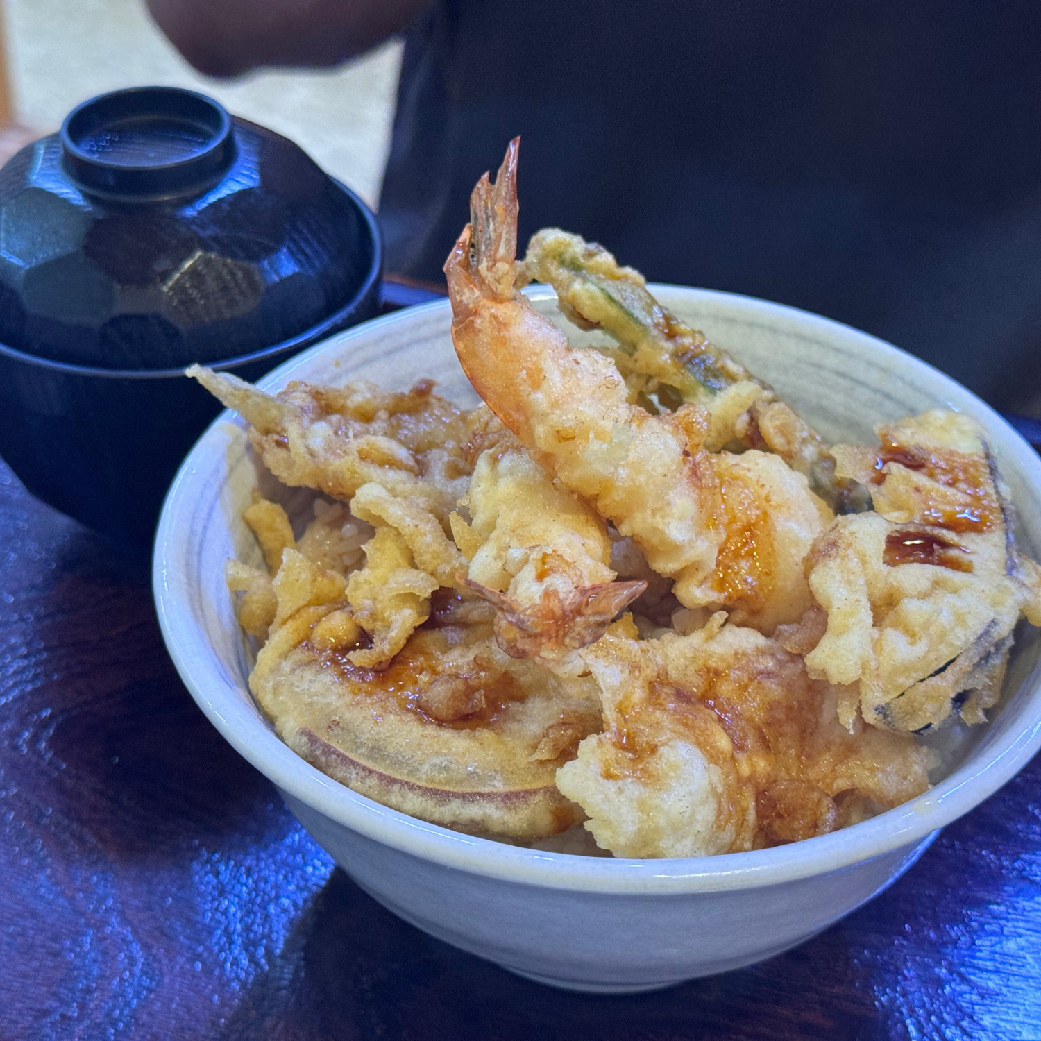 位於土浦車站西口步行約2分鐘的「天婦羅八起」,是一間充滿人情味的在地食堂。老爺爺負責現炸天婦羅,老奶奶則親切地招呼客人,整間店就像是他們溫暖的家。當天進到店裡,坐著的幾乎都是當地人,一邊用餐一邊聊天,氣氛好放鬆。我們點了天婦羅定食和天丼,每樣炸物都酥酥脆脆,蝦子超好吃,丼飯的醬汁也很入味,不知不覺就吃光光了!