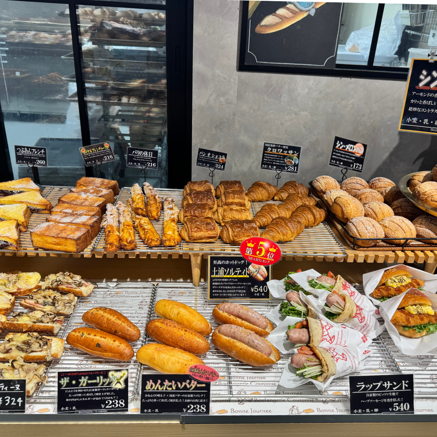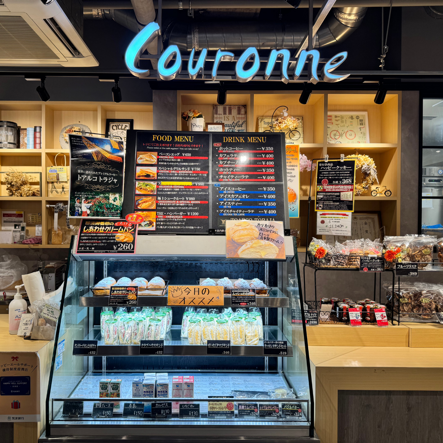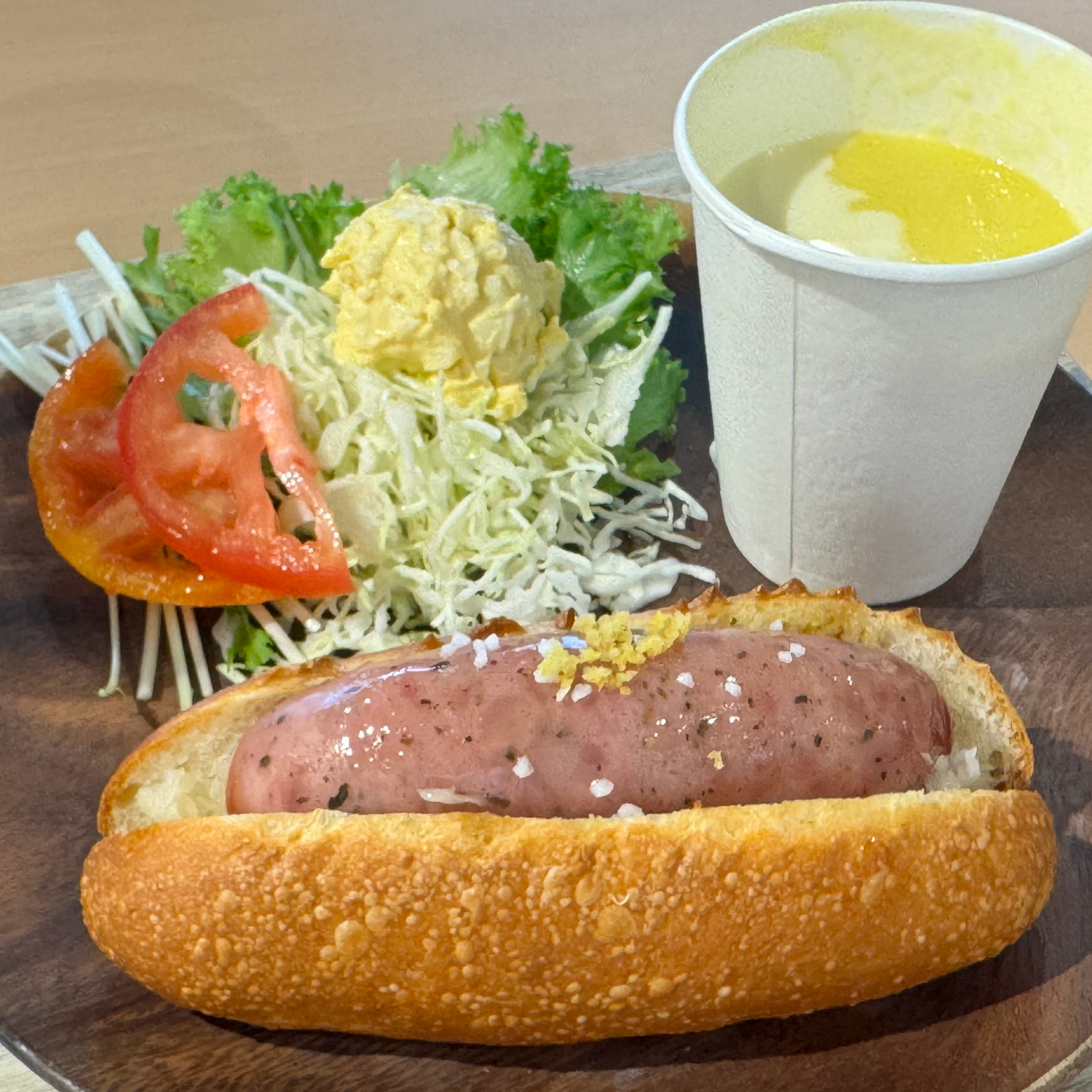 BEB土浦的早餐是與車站內店家合作提供的,共有三種選擇:①Tully’s、②麵包店「Couronne」、③特急鶏蕎麦龍介(僅六日與假日供應)。我們選擇了麵包店的套餐,本來以為只是簡單一個麵包,沒想到內容比預期豐富許多!熱狗麵包的口感讓男友直呼好吃。這家「Couronne」也是當地人氣名店,曾多次在電視上介紹,現烤出爐的麵包每一個都讓人超想試,難以選擇。
