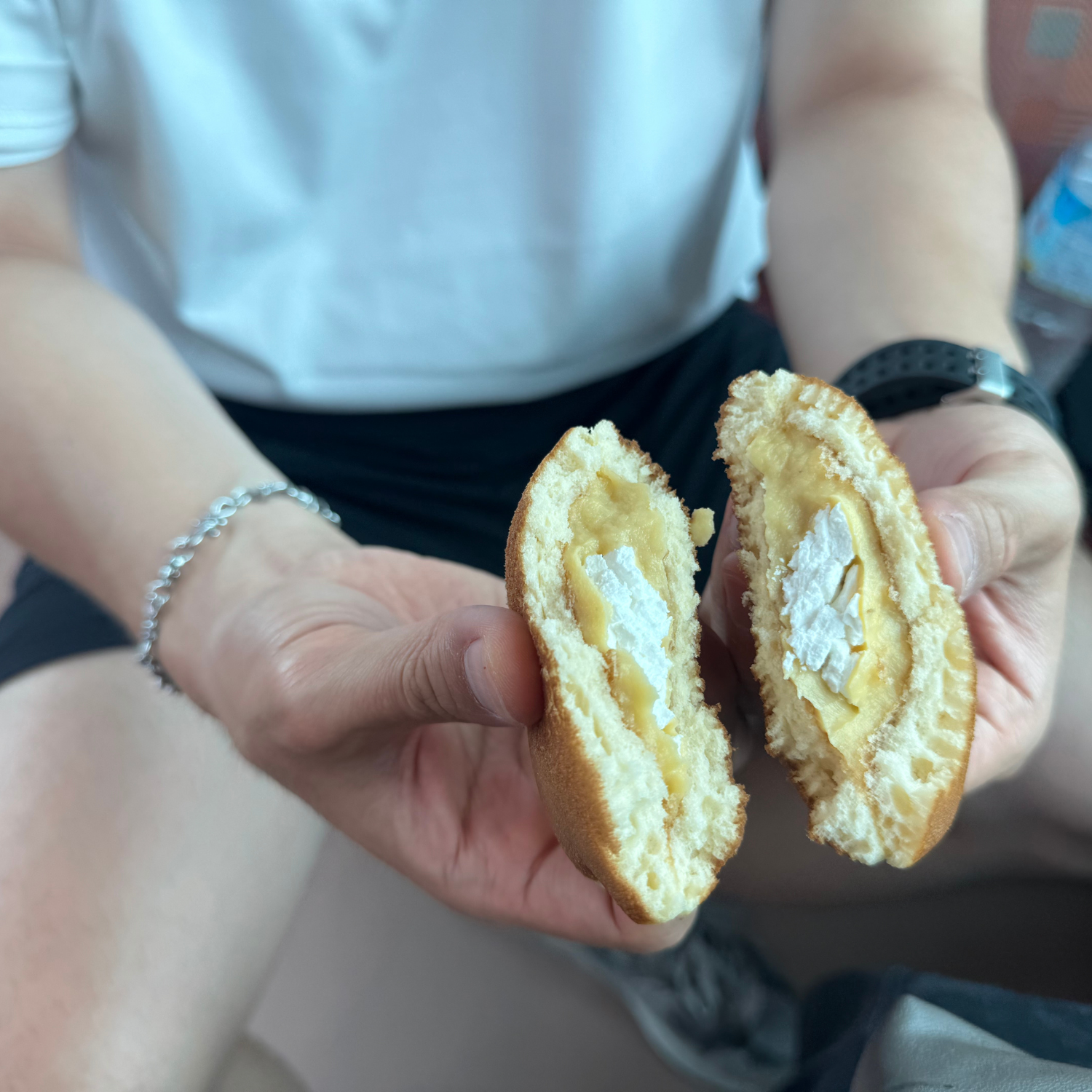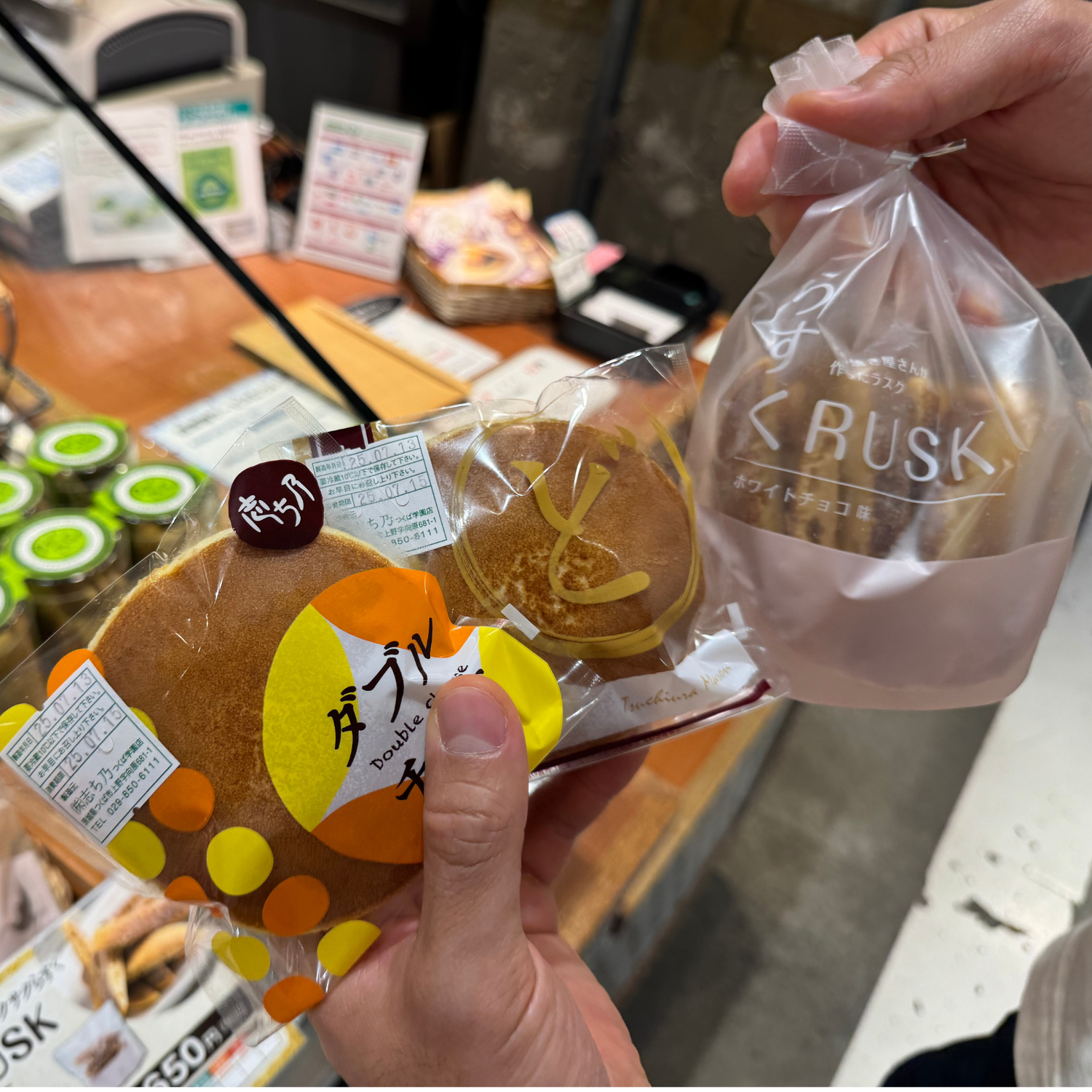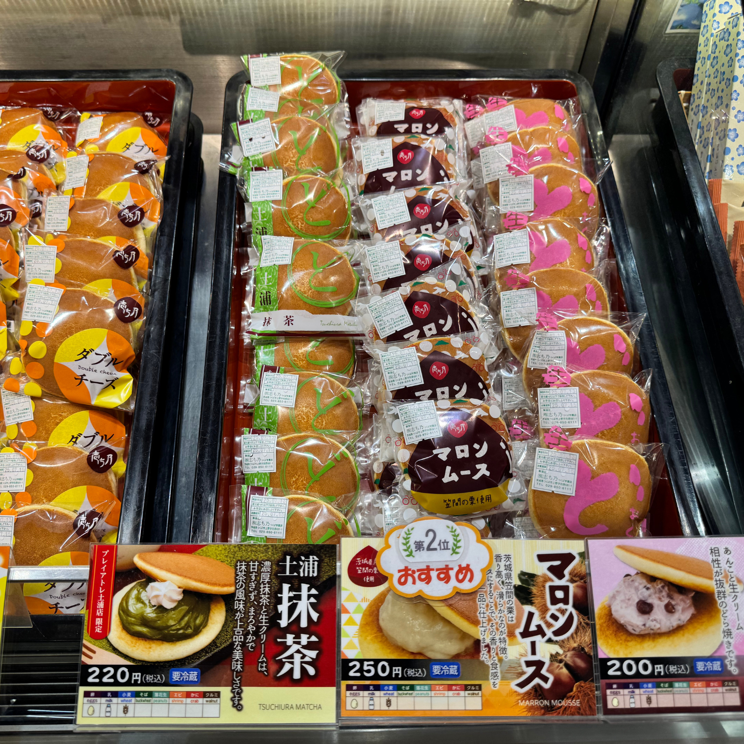 回家前當然不能錯過土浦的伴手禮!我們來到車站二樓 PLAYatre 的銅鑼燒專門店「志ち乃」,是一間深受當地人喜愛的老字號名店。當天我們選了人氣第一的起司口味和人氣第二的栗子奶油,內餡濃郁、餅皮柔軟,果然超好吃。最驚喜的是我隨手拿的「銅鑼燒脆餅」,竟然保留了原本銅鑼燒餅皮的濕潤感,比一般脆餅更有層次,是我會想回購的那種好吃!