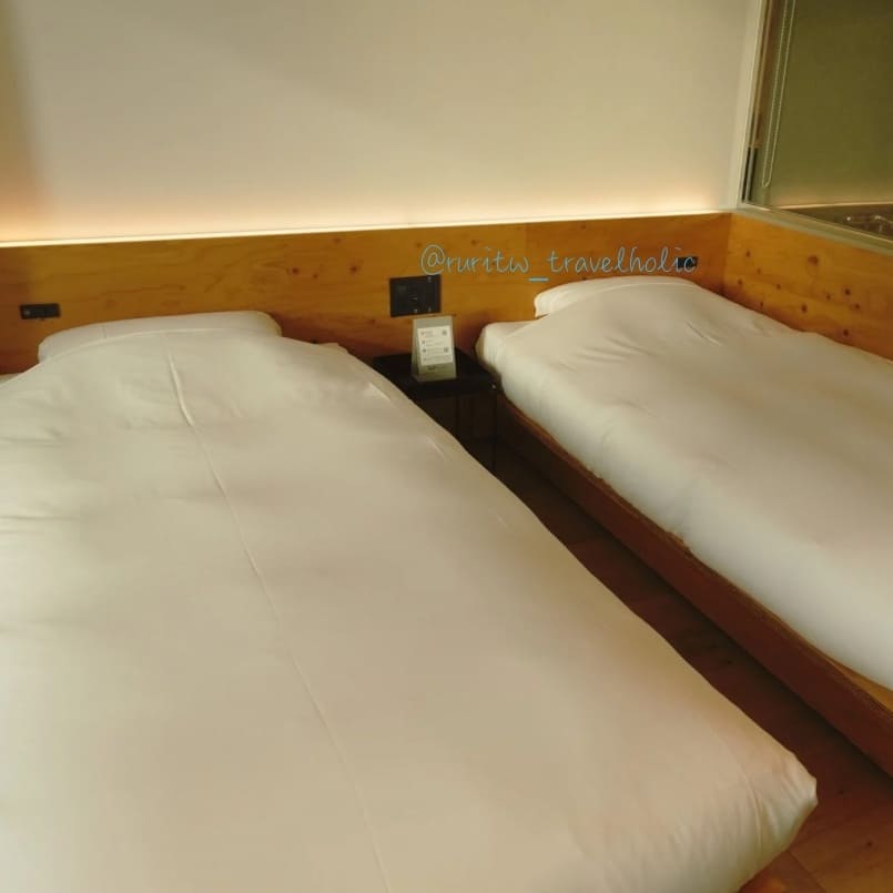 這次的住宿安排在土浦車站一出來,便一目了然的星野集團飯店「BEB5 土浦」。我們在抵達時先去寄放行李,等到逛完公園回來,超過下午 3 點就可以辦理入住。大廳及房間的室內設計風格融合土浦的單車元素,呈現簡約而現代的感覺。大廳拜訪著沙發與桌椅,配合柔和的光線,營造溫暖放鬆的氛圍。飯店提供各類書籍及桌遊,皆可自由帶回房間或在大廳使用,不論是獨旅或三五好友成群出遊都很適合打發時間。房間內設有可以掛單車的單車架,插座很多很方便。