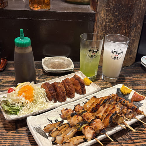 晚餐選擇來到附近的老字號居酒屋「やまとや」。隱身在地下,店面雖然不起眼,卻是歷史悠久且非常多名人來到訪用餐的居酒屋,一走進店裡,牆上滿滿的簽名讓人印象深刻。那天正好被安排坐在吧檯的位置,能近距離看到師傅在開放式廚房裡現烤串燒。必點招牌餐點是土浦名產蓮藕天婦羅、炸蓮藕夾肉餅,可惜天婦羅已售完,不過炸肉餅口感外面酥脆內餡紮實且香氣十足,另點的魷魚與串燒也都表現出了店家的優秀水準。