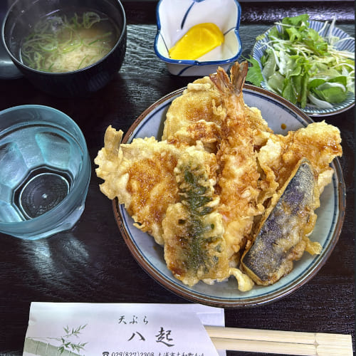 騎完腳踏車後,來到了旅程的最後一站。體力幾乎耗盡的我們,選擇了距離飯店最近、也是在地人強力推薦的天婦羅老店「天ぷら八起」。店面雖不大,卻洋溢著傳統日式氛圍。非用餐時間因此店裡只有我們這組客人,店裡的爺爺十分親切地給我們茶水。點了人氣最高的天丼,金黃酥脆的炸衣裡包著新鮮的蝦與蔬菜,口感輕盈不油膩。現炸上桌的香氣撲鼻,讓人食指大動,是這趟旅程完美的結尾。