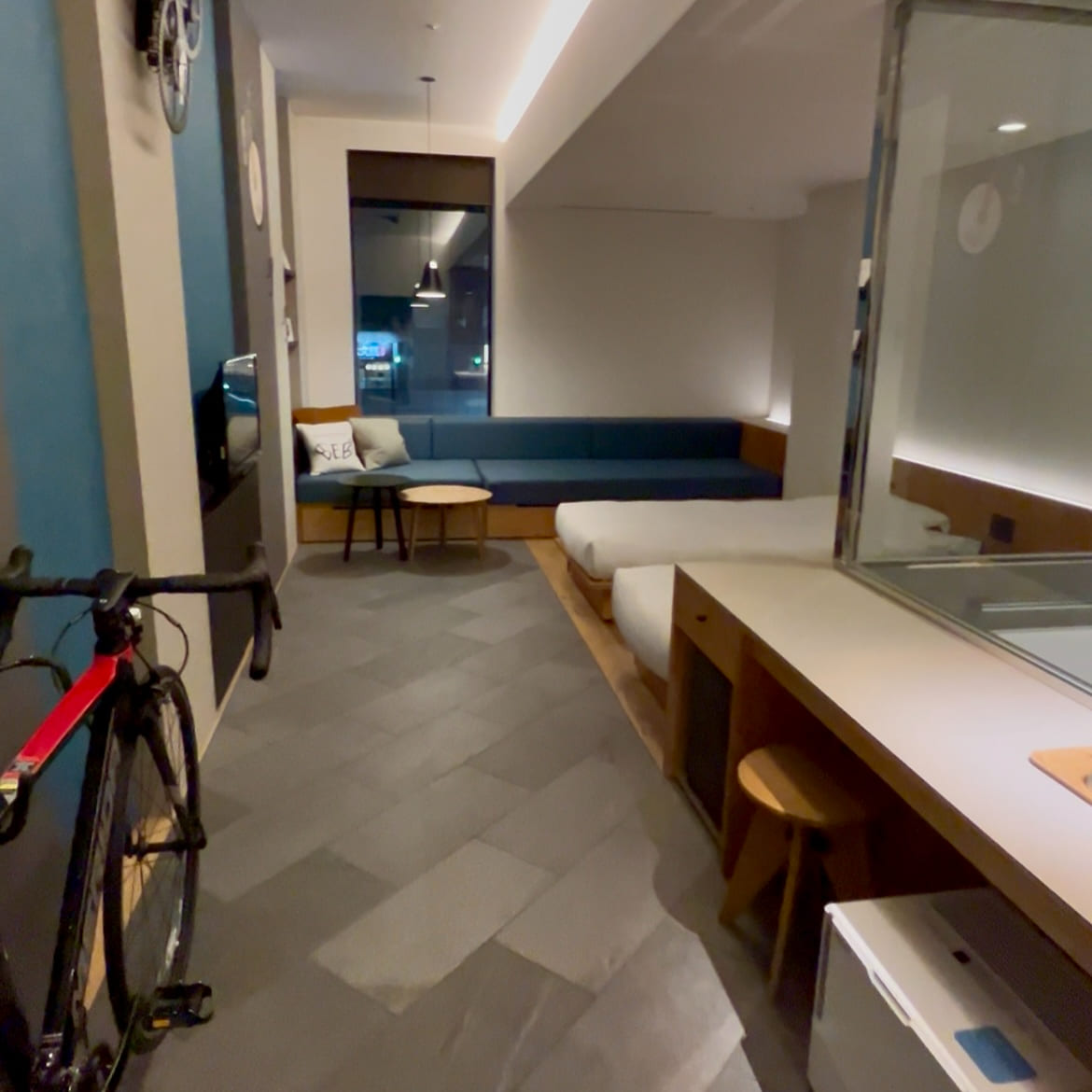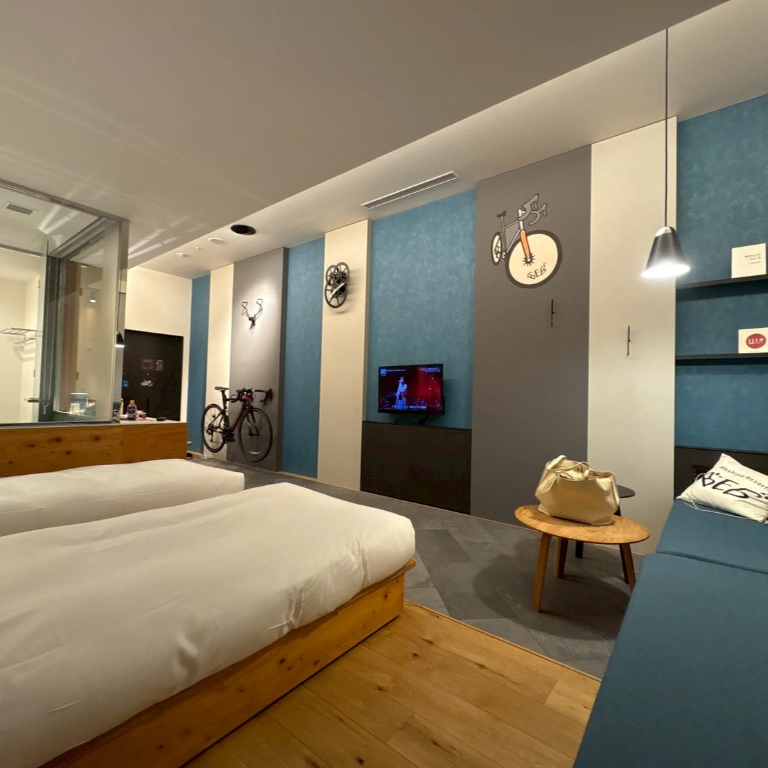 房間乾淨簡約,單車元素滿滿。 重點是超級寬敞~~~ BEB 系列主打「輕鬆、有玩心,卻又帶點星野質感」。 休息一下準備去吃晚餐。