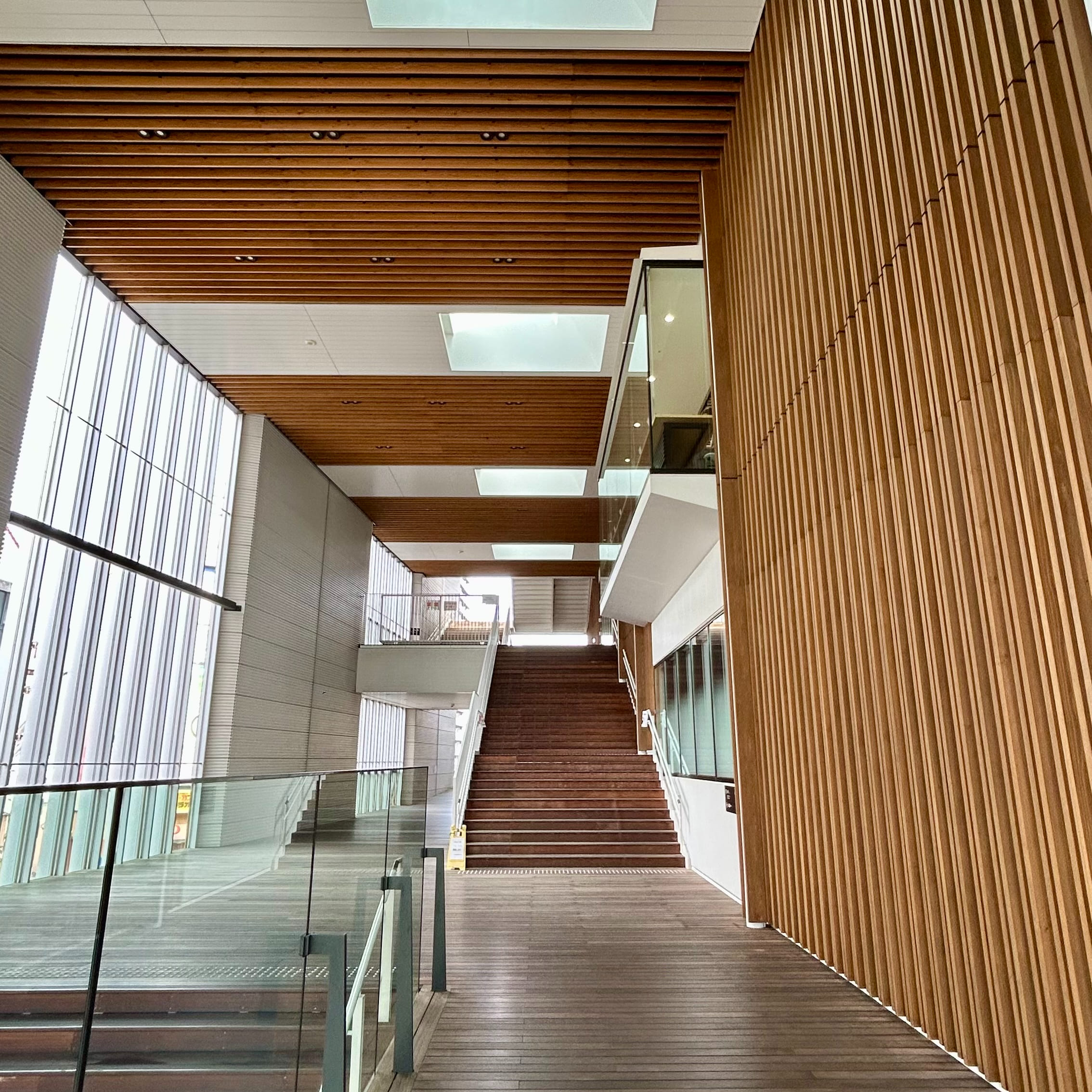 車站旁的圖書館📚 新的程度像剛開幕✨ 明亮、寬敞、設計感很高,還能看得到車站的景。 屋頂花園也很適合曬太陽🌞 我立刻問老公:「可以調職到土浦嗎?」😹 一樓是藝廊。 另外在一樓櫃檯填問卷還能拿到 水溝蓋卡,收藏迷一定要收。