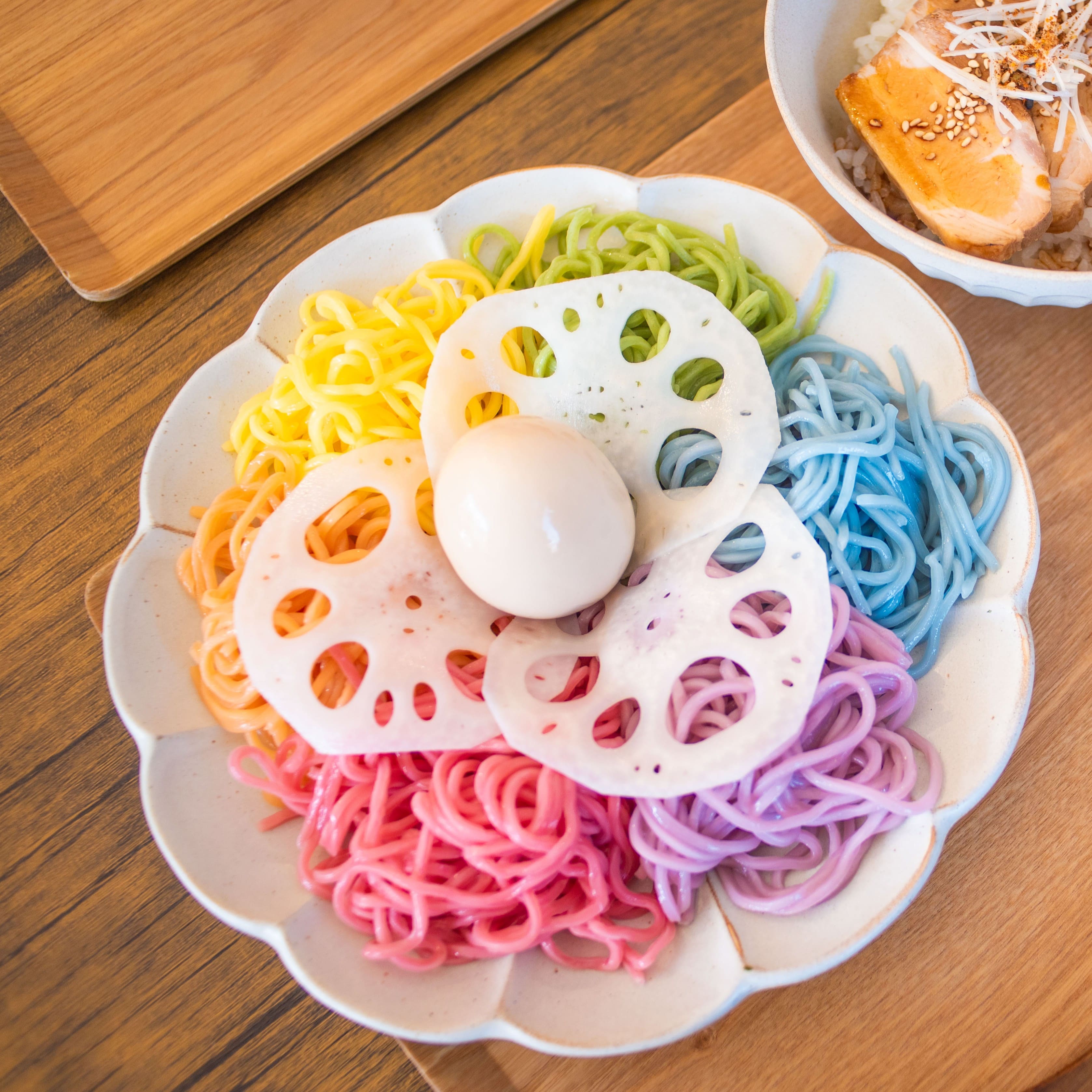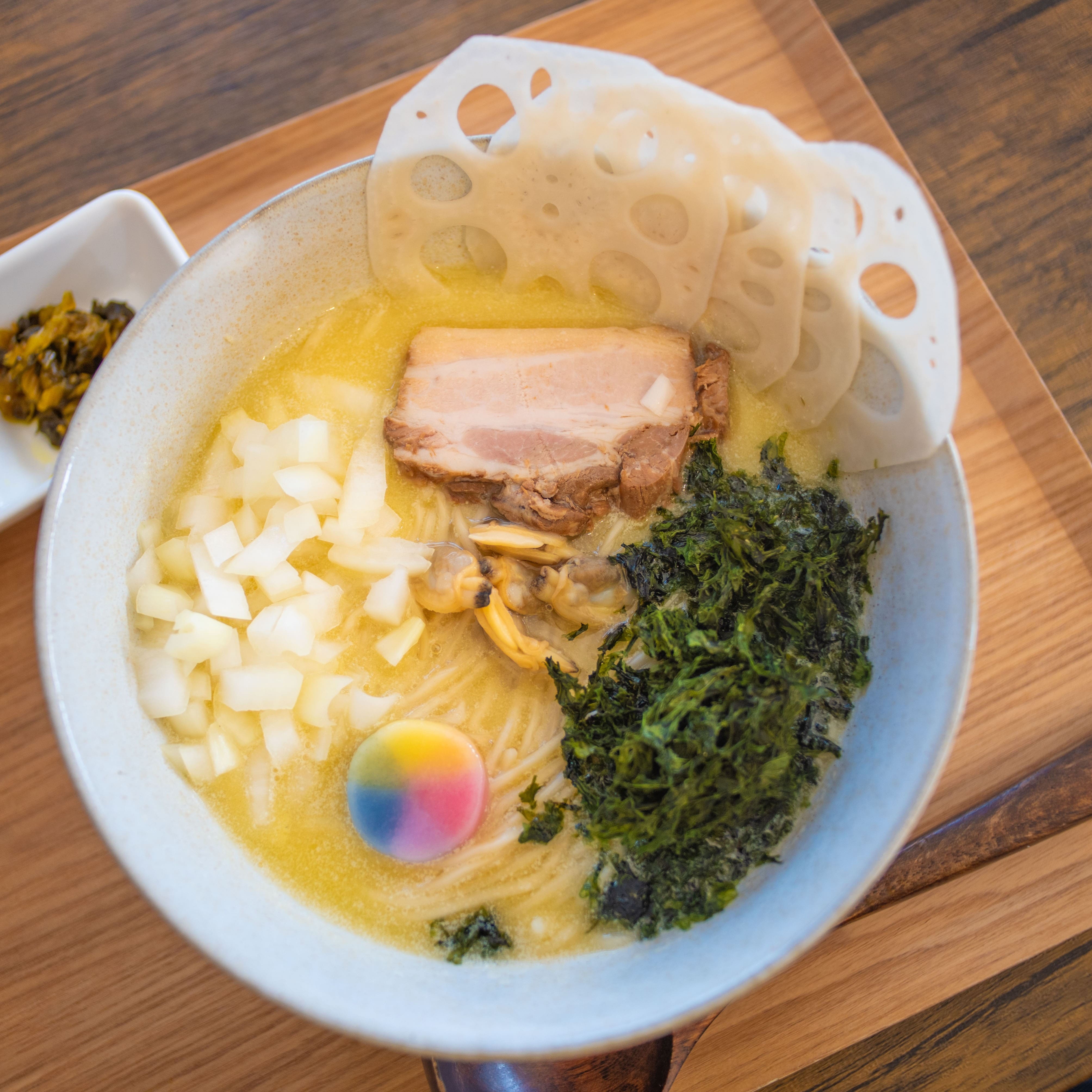 身為愛吃情侶檔決定腳踏車行第一站就是品嘗在地美食。一抵達店門口就可以看到專門給腳踏車停車上鎖的車位,進店後老闆還說剛好有活動,騎腳踏車前來的客人可以免費加一種料,也太幸運!我決定選土浦最有名的市川蓮藕搭配當月限定的蜊仔拉麵,是少數清爽到我可以整碗喝完的湯底。男友點了超好拍的六色蔬菜沾麵,Q彈清爽的麵條搭配盛滿叉燒的湯汁真的超飽足。最後我們還喝吃了一碗假日限定的叉燒飯,這間店的叉燒真的很推薦!
