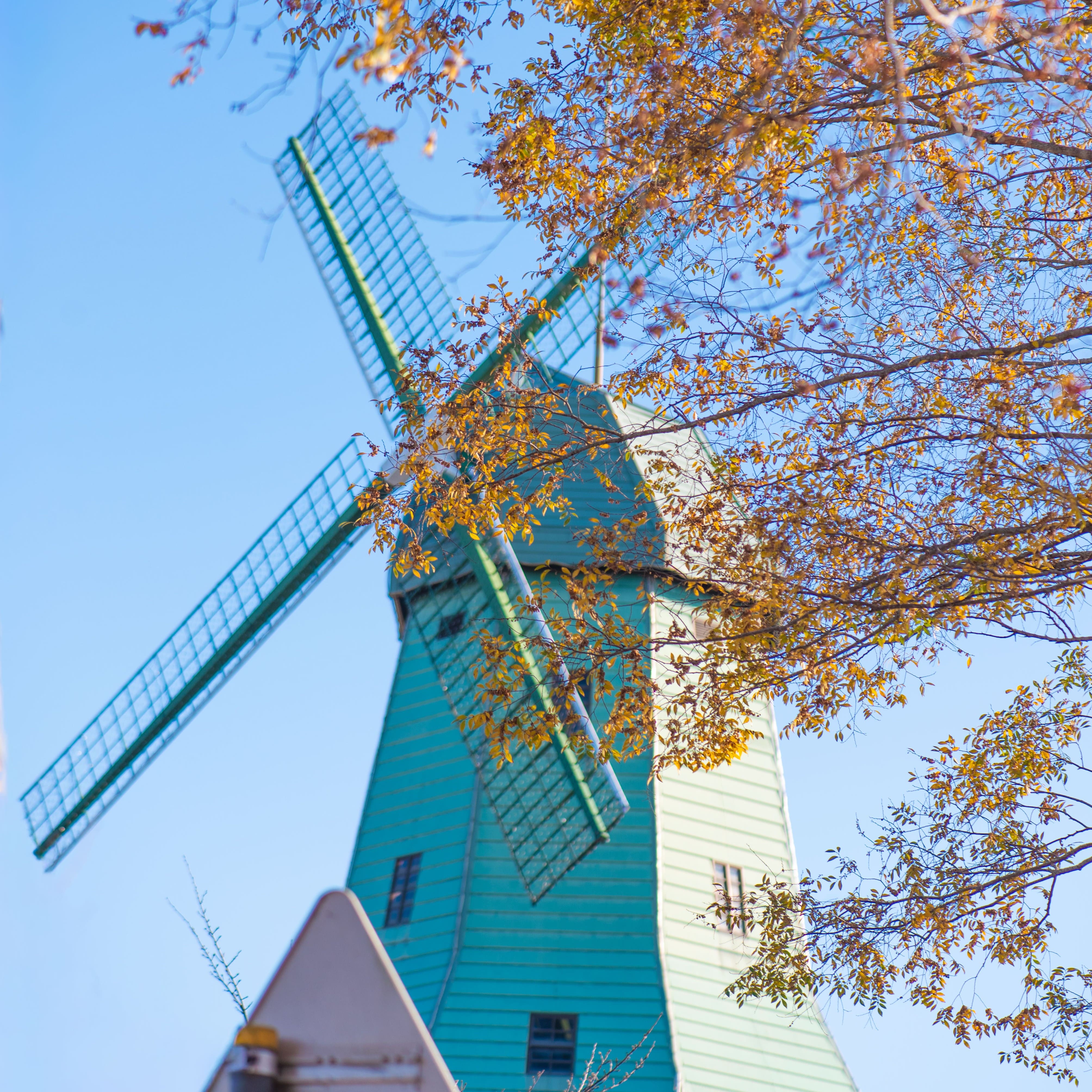 吃飽後騎回剛才經過的霞ヶ浦総合公園,這裡的巨大風車是土浦的地標。也可以登上風車展望風景,可能因為茨城機場的關係,還可以拍到飛機和風車同框的場景喔!除了風車,附近往湖邊走的步道剛好一片芒草,也很適合擺拍打卡。當天很幸運在公園另一邊還有一排染紅的小樹林,剛好抓住秋末最後的紅葉。 ※腳踏車停車位:風車前的停車場。 離開時沿著霞ヶ浦騎著腳踏車欣賞靜謐的湖景,彷彿被大自然療癒一般,讓人整個都放鬆下來