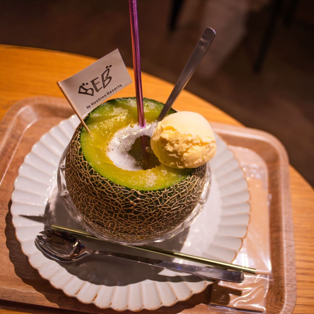 飯店內咖啡店販售的招牌哈密瓜冰淇淋蘇打也是不容錯過!使用整顆哈密瓜裝載著蘇打汽水,配上角落的香草冰淇淋,還可以一邊挖出鮮甜的哈密瓜果肉,即便在涼爽的秋天吃也是非常療癒又幸福!
