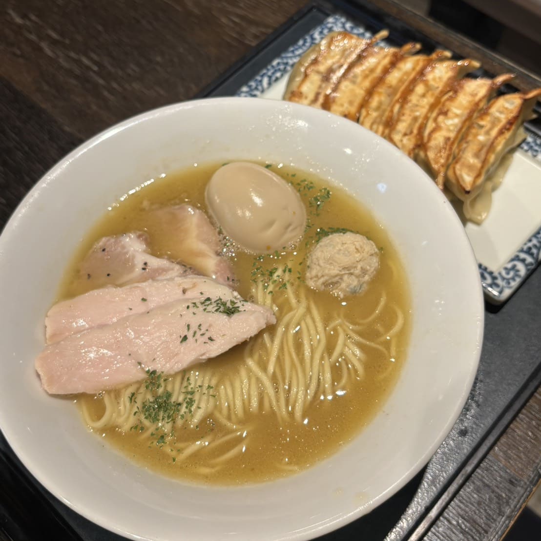 離開土浦前決定嘗試從第一天就很在意的車站商場內的雞湯拉麵。這款雞湯濃厚到拉麵剛上桌才拍幾張照後湯就開始凝固,吃完後嘴唇還是滿滿的膠質、油亮亮的,很適合喜歡重口味拉麵的人。麵條是細扁麵,吃起來有點像是台灣一般小吃店會有的乾拌麵的種類。然後煎餃也很好吃,內餡加了一點點韭菜讓味道更香!