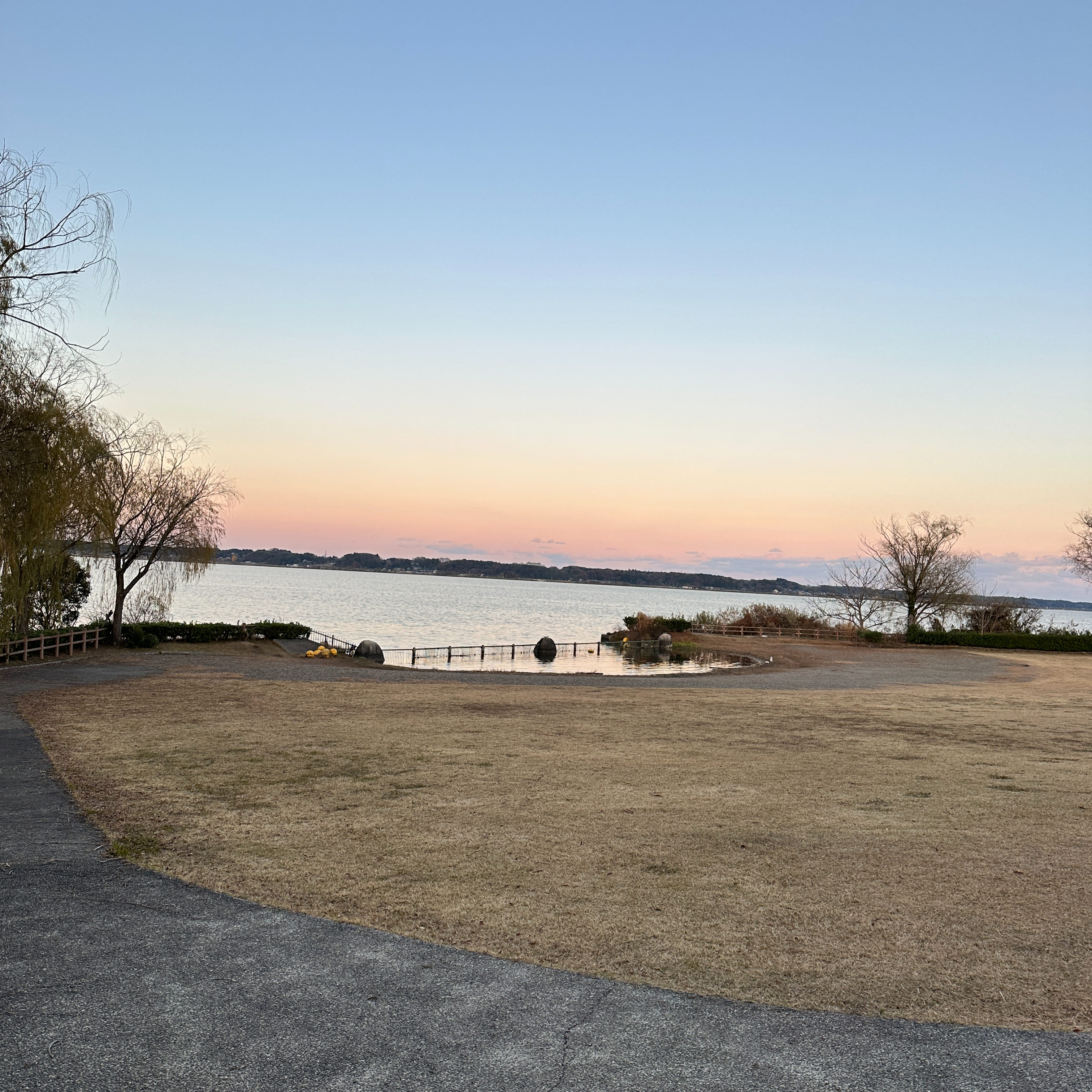 離開龜城公園後,我就一路騎腳踏車前往霞浦湖。本來打算在湖邊慢慢等夕陽下山,卻忘了日本冬天日落得特別早,騎到那裡時天色已經漸漸暗了。不過還是沿著湖邊走了一會兒,氣氛很安靜,也讓人覺得很放鬆。雖然天氣有點冷,但並不會寒風刺骨,反而有種冬天特有的清爽感。之後到旁邊的「霞浦の湯」好好洗了個澡、泡了溫泉,真的超級舒服!雖然是人工溫泉,但對騎了一整天腳踏車的人來說,非常適合消除疲勞,整個人都被療癒了!