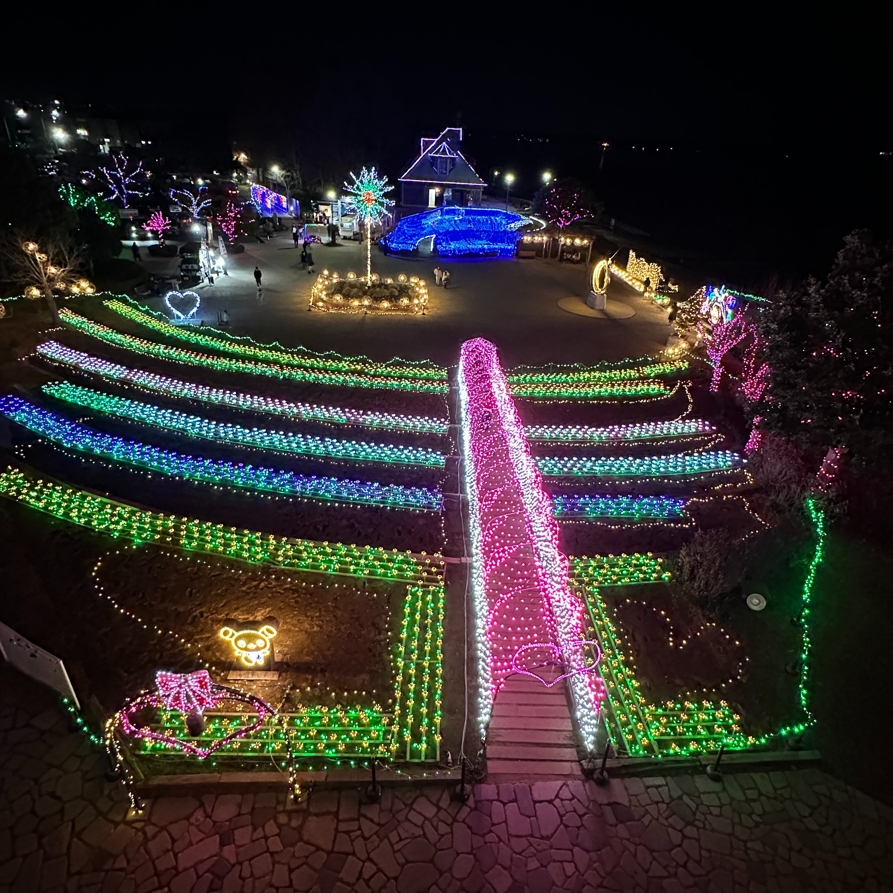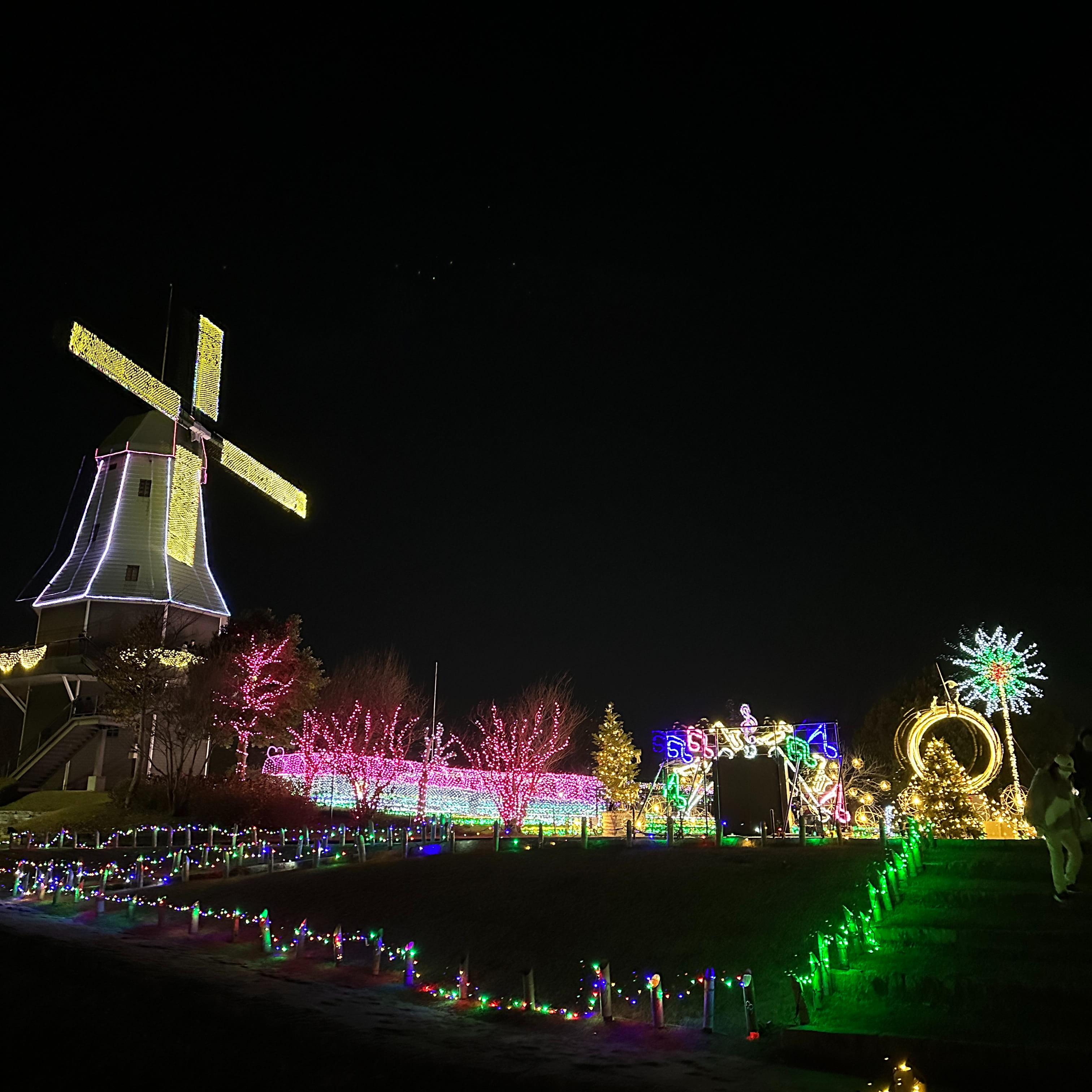 泡完湯後,我又到旁邊的霞浦綜合公園走走。晚上公園會點燈,整個氛圍變得非常漂亮又浪漫。這裡也有不少小餐車擺攤,完全不用擔心肚子餓,選擇也很多元。一路走到風車上方,還可以俯瞰整個霞浦湖,雖然因為天色已暗看不太清楚,但站在上面的視野真的很棒。公園裡也能看到很多在地人來約會、散步,或是帶著小朋友和寵物一起走走,整體氣氛非常悠閒,真的是一個讓人很喜歡、很放鬆的好地方!